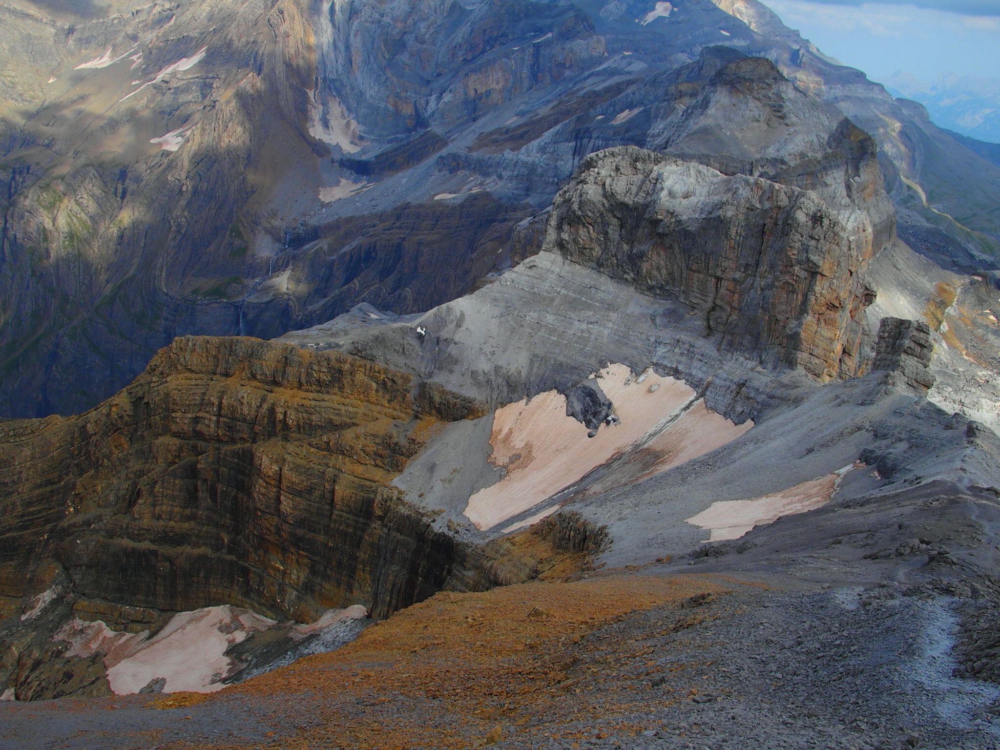 Belle montée depuis le col de Tente et la brèche de Roland . Belle vue sur les Pyrénées françaises et espagnoles (Canyon d' Ordessa)